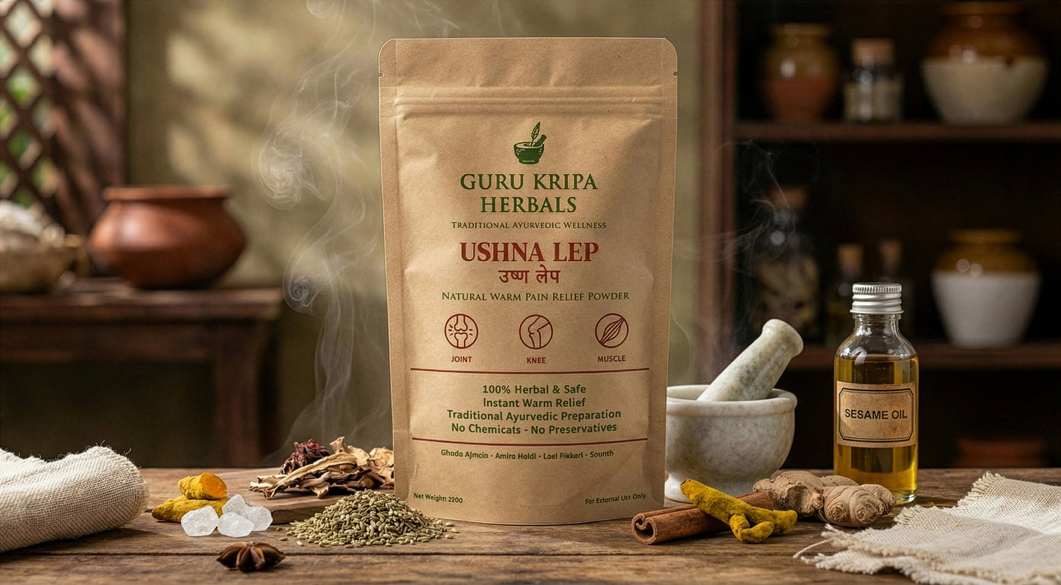 Ushna Lep is a traditional Ayurvedic warm herbal preparation by Guru Kripa Herbals, made fresh at home and applied warm to the body. Rooted in time-honoured wisdom, it uses the power of natural warmth and herbs to help soothe stiffness and support everyday joint, knee, and muscle comfort.